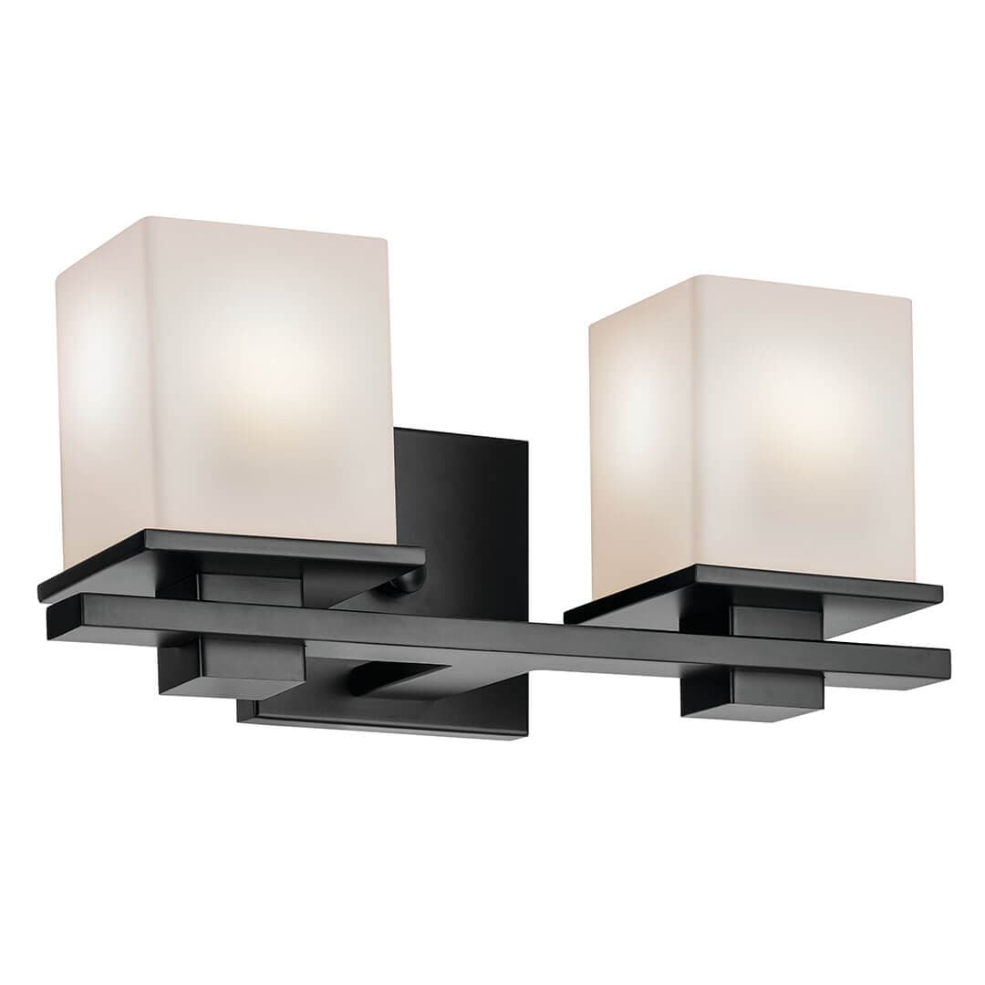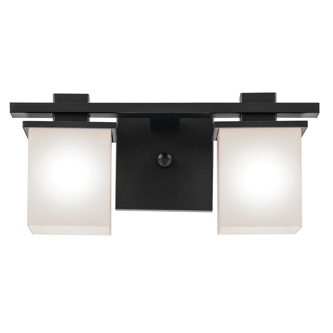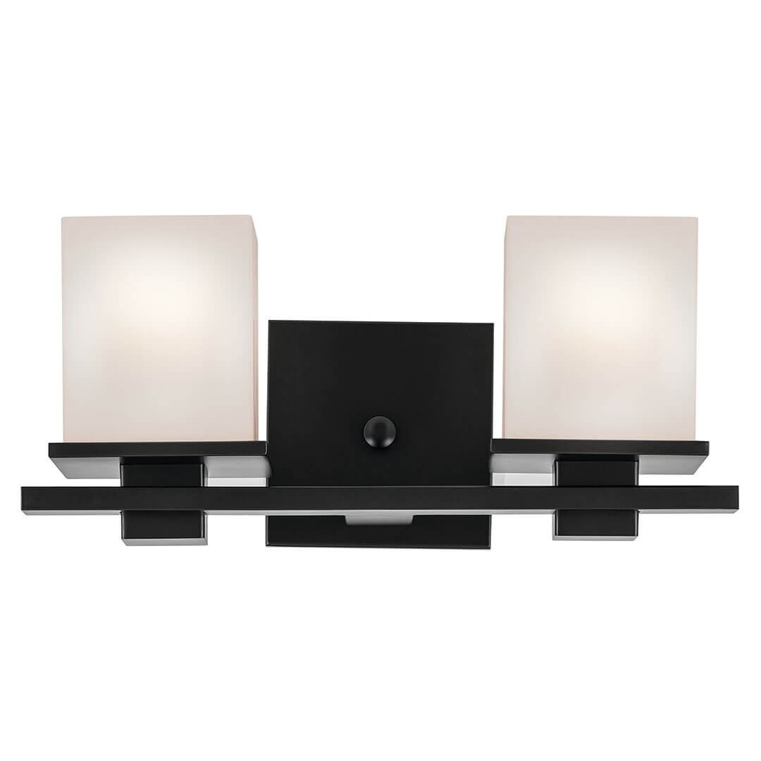 Baxter 15" Two Lights Vanity Light, Satin Etched Cased Opal Glass / Black