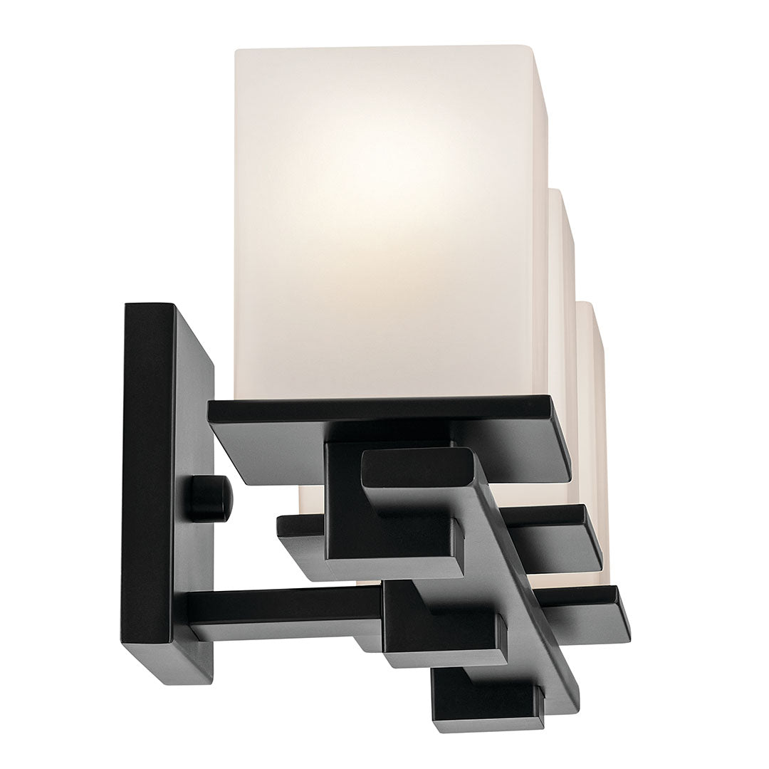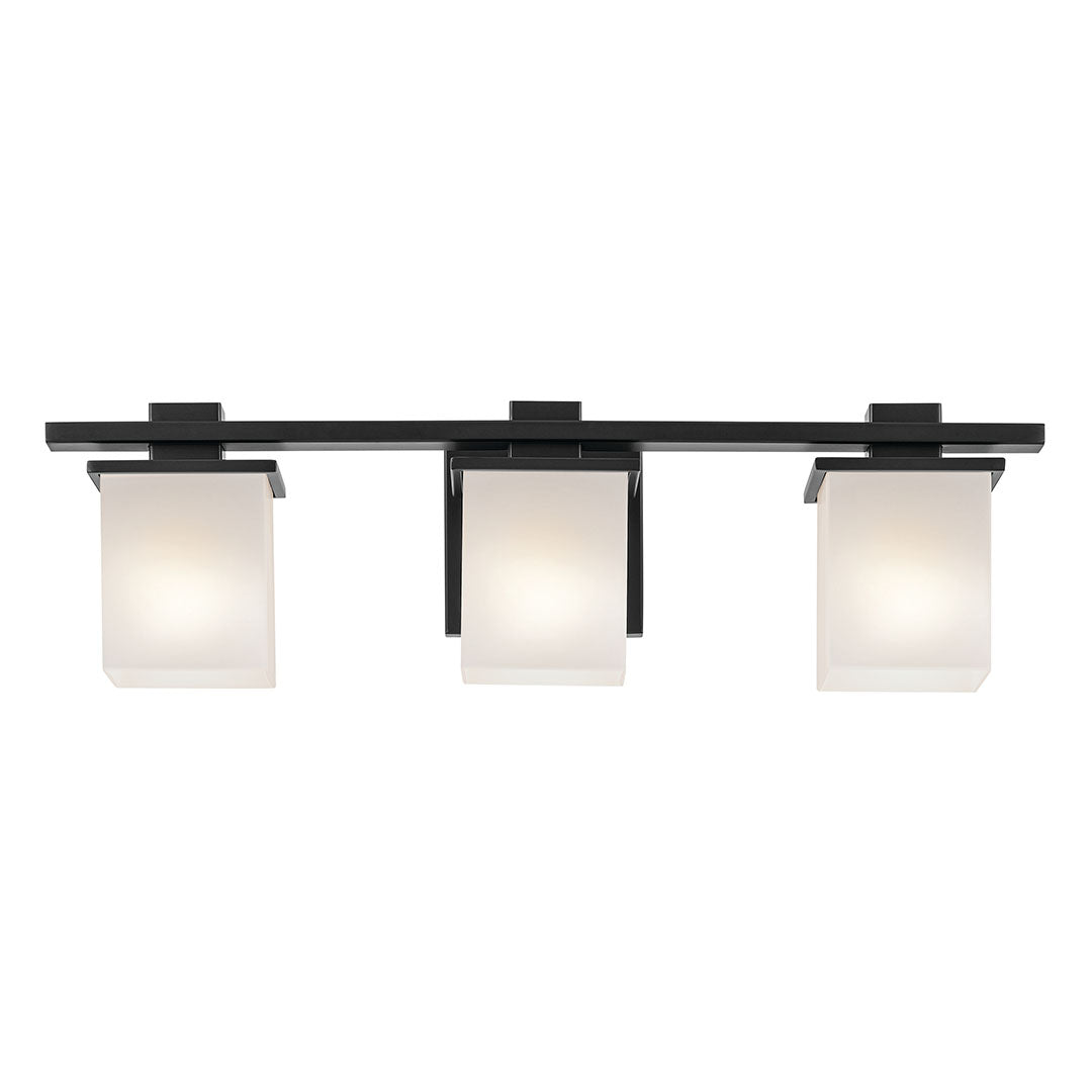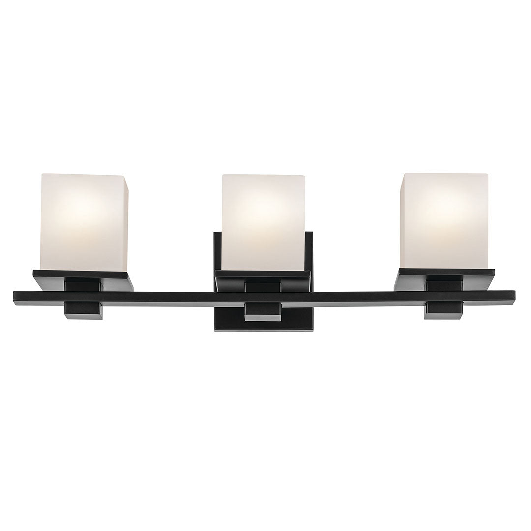 Baxter 24" Three Lights Vanity Light, Satin Etched Cased Opal Glass / Black