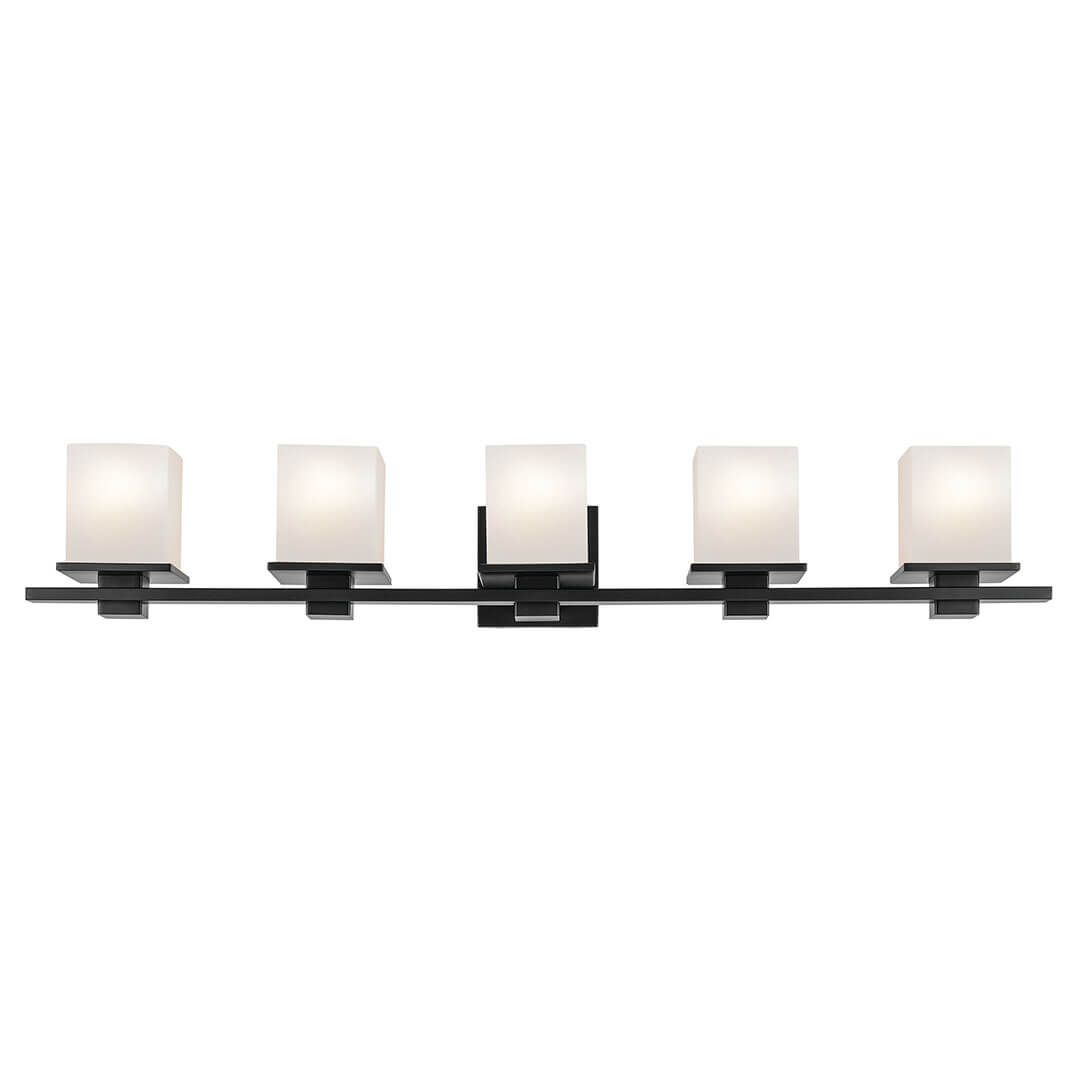 Baxter 40" Five Lights Vanity Light, Satin Etched Cased Opal Glass / Black