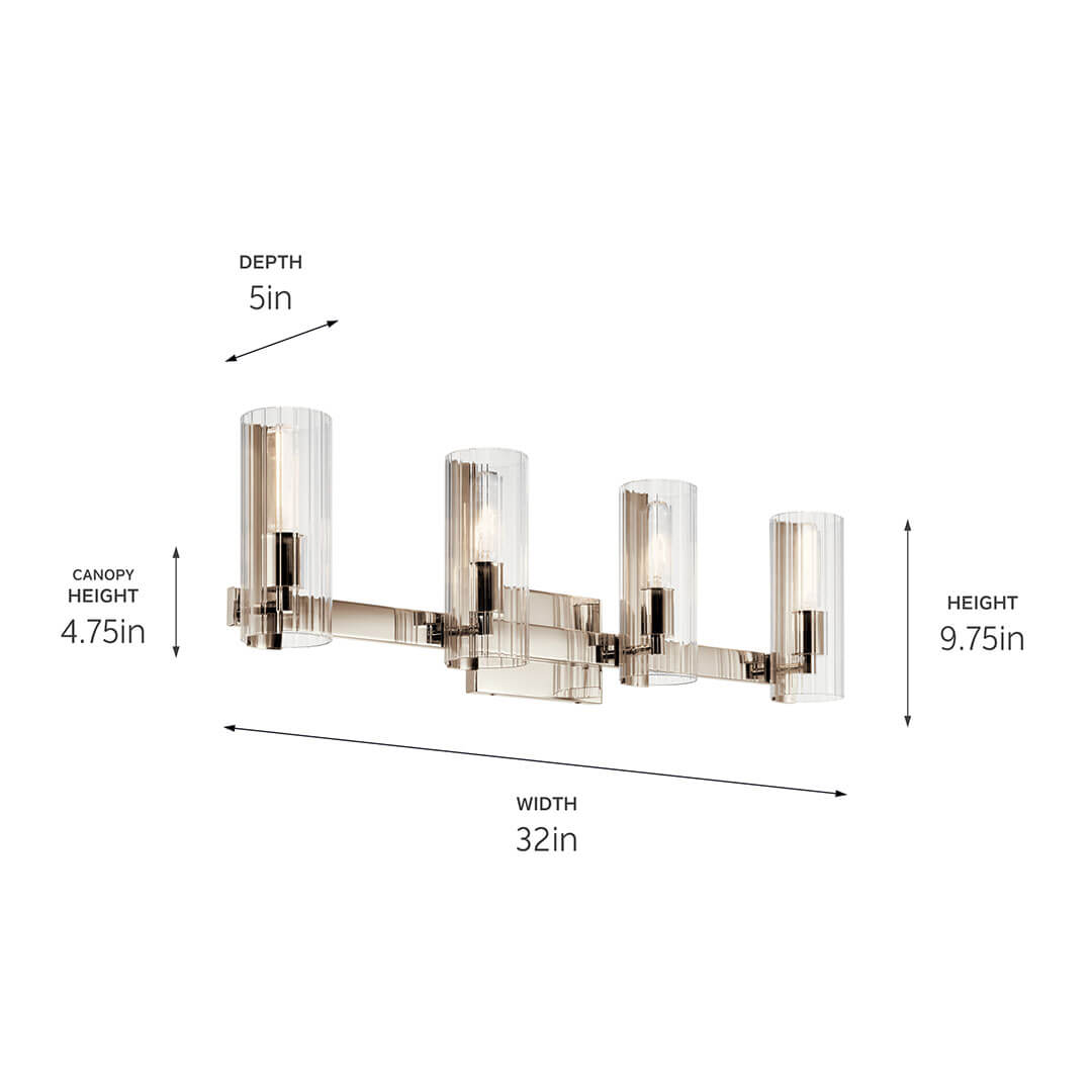 Corbin 32" Four Lights Vanity, Clear Fluted Glass / Polished Nickel