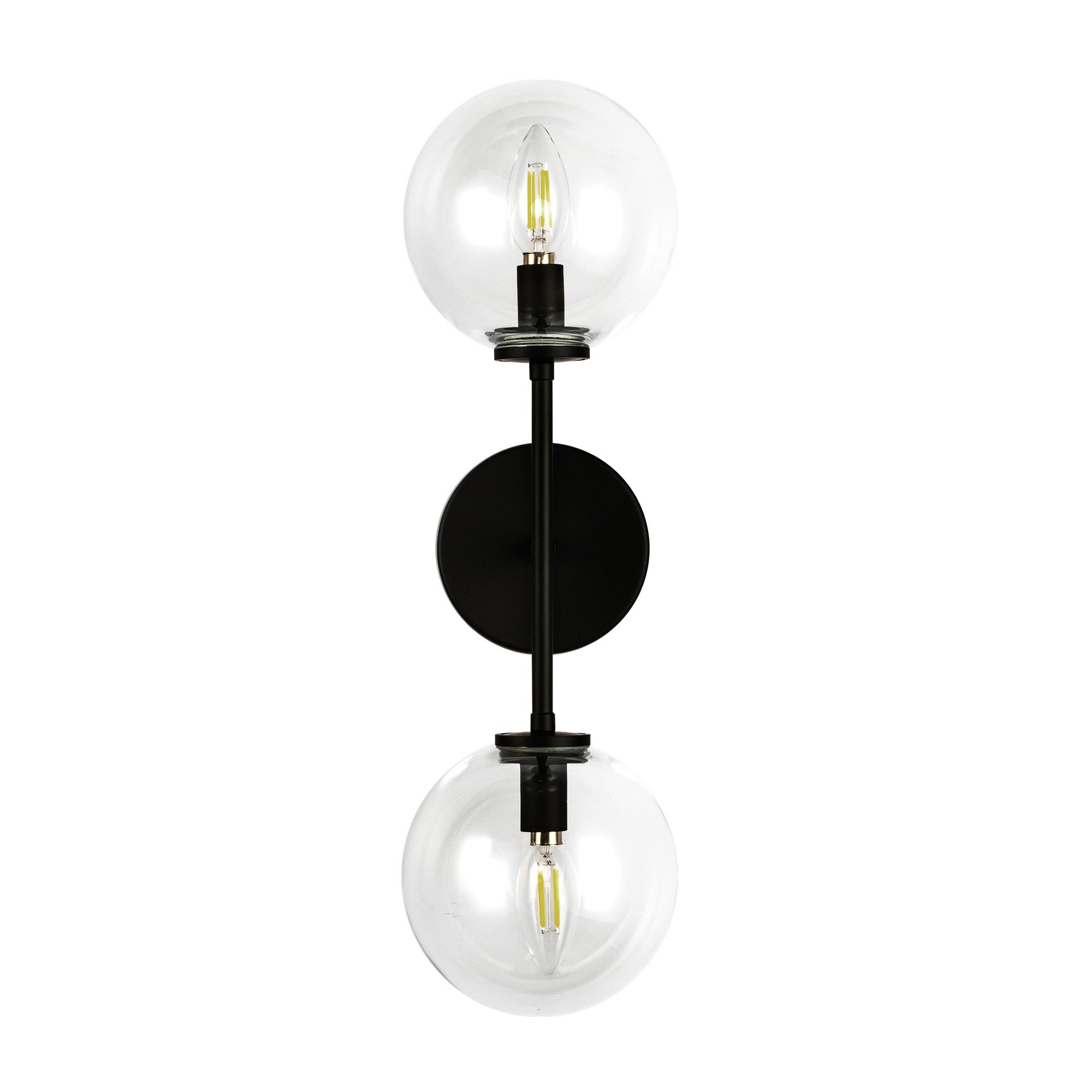 Stacked globes form a clear vertical marker in this two-light wall/vanity light. Illumination moves upward and downward at the same time so the whole room brightens without harsh points. A compact center mount keeps the line unbroken whether the fixture is on or off. When lit, the forms shimmer softly, and at rest the outline stays spare and tidy.