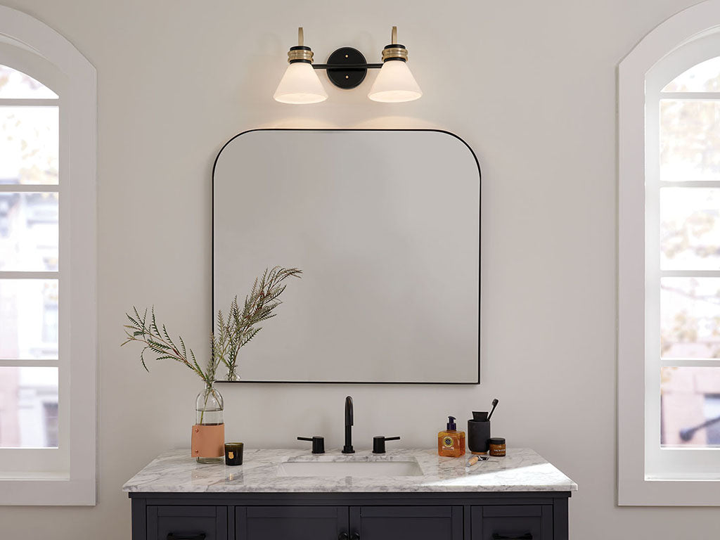 Merritt 19" Two Lights Vanity, Opal Glass / Black Champagne Bronze