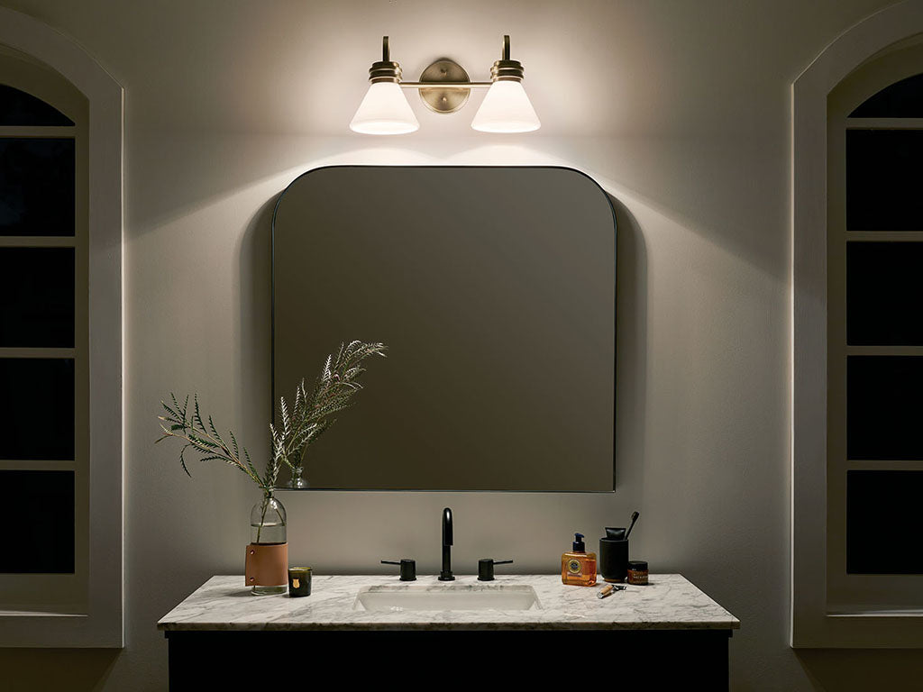Merritt 19" Two Lights Vanity, Opal Glass / Champagne Bronze