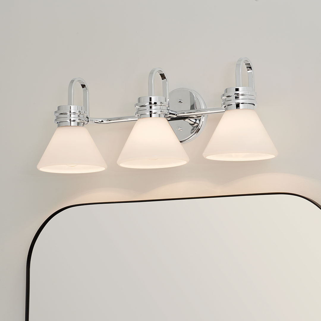 Merritt 26" Three Lights Vanity, Opal Glass / Chrome