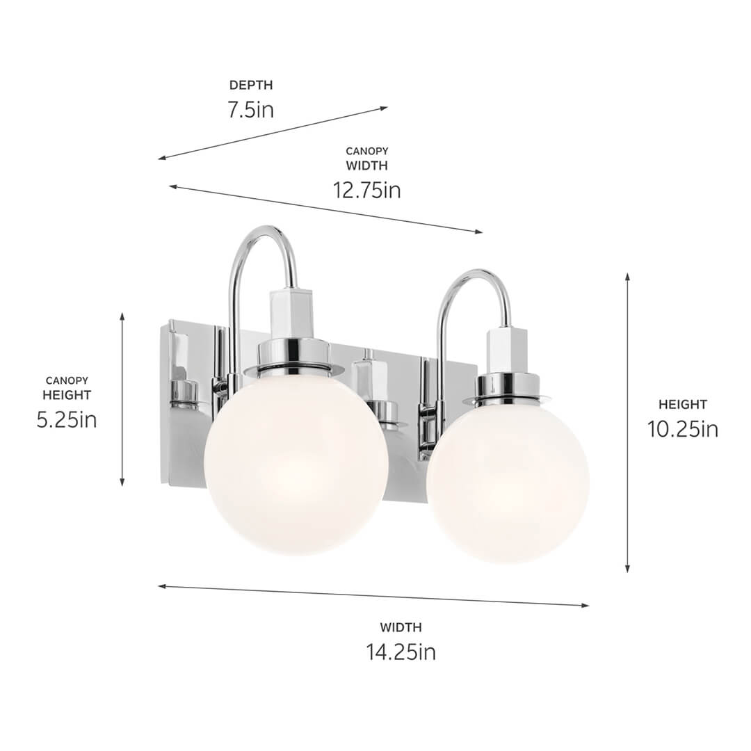 Rexie 14" Two Lights Vanity, Opal Glass / Chrome