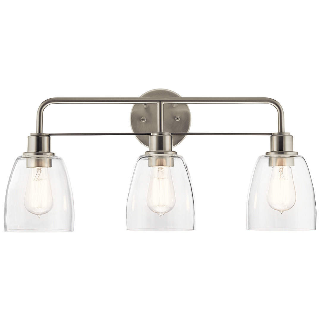 Vaughn 24" Three Lights Vanity Light, Clear Glass / Brushed Nickel