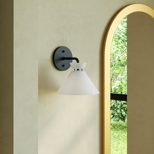 Alice 6" Vanity Wall Sconce, Matte Black/Opal Glass