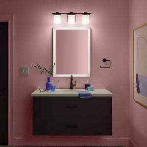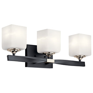 Blanchette 23" Three Lights Vanity Light, Satin Etched Cased Opal Glass / Black