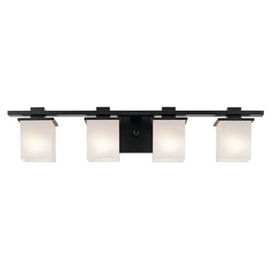 Baxter 32" Four Lights Vanity Light, Satin Etched Cased Opal Glass / Black
