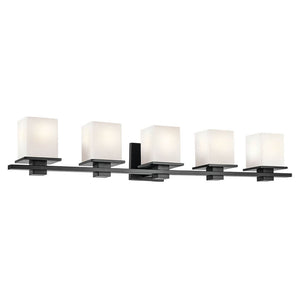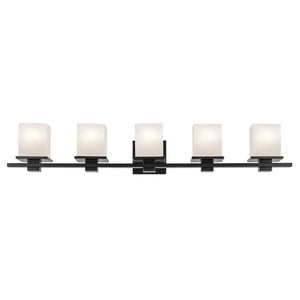 Baxter 40" Five Lights Vanity Light, Satin Etched Cased Opal Glass / Black