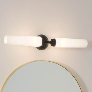 Baxter 15" Two Lights Vanity Light, Satin Etched Cased Opal Glass / Black