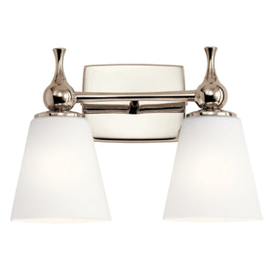 Viva 15" Two Lights Vanity Light, Etched White Glass / Polished Nickel