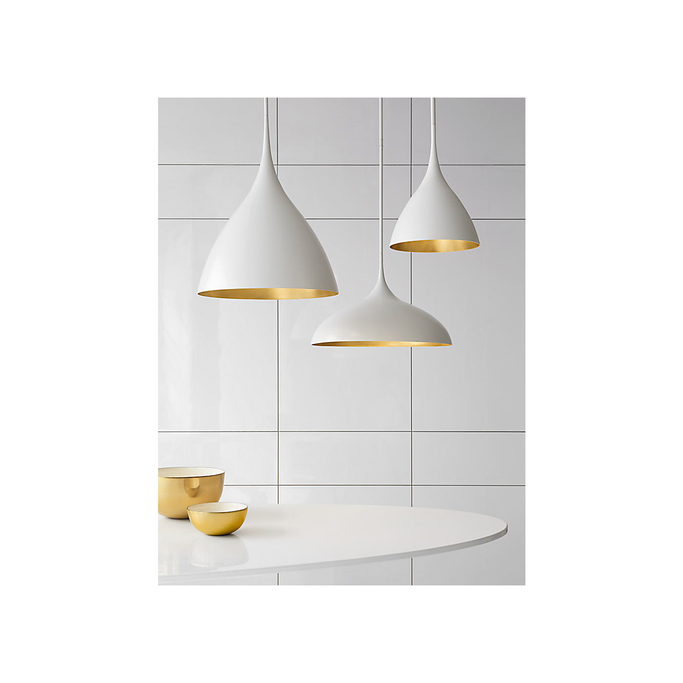 The Agnes by AERIN boasts mid-century modern ceiling lights with a minimalist, bell-shaped design and a sleek finish. It is perfect for medium-sized, contemporary spaces such as a kitchen, dining room, or entryway. The contrasting interior and exterior is a stylish touch that provides additional character when illuminated.