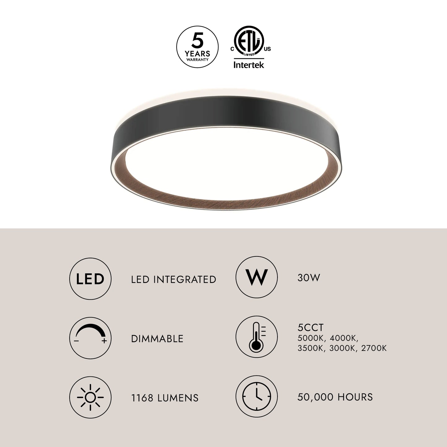 Aura 16" LED Flush Mount Ceiling Light, Black/Walnut
