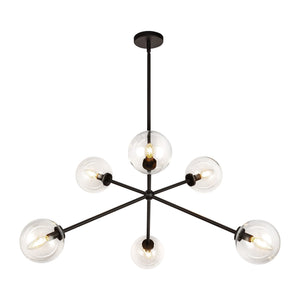 Venus 40" Six-Light Chandelier, Matte Black/Clear Glass