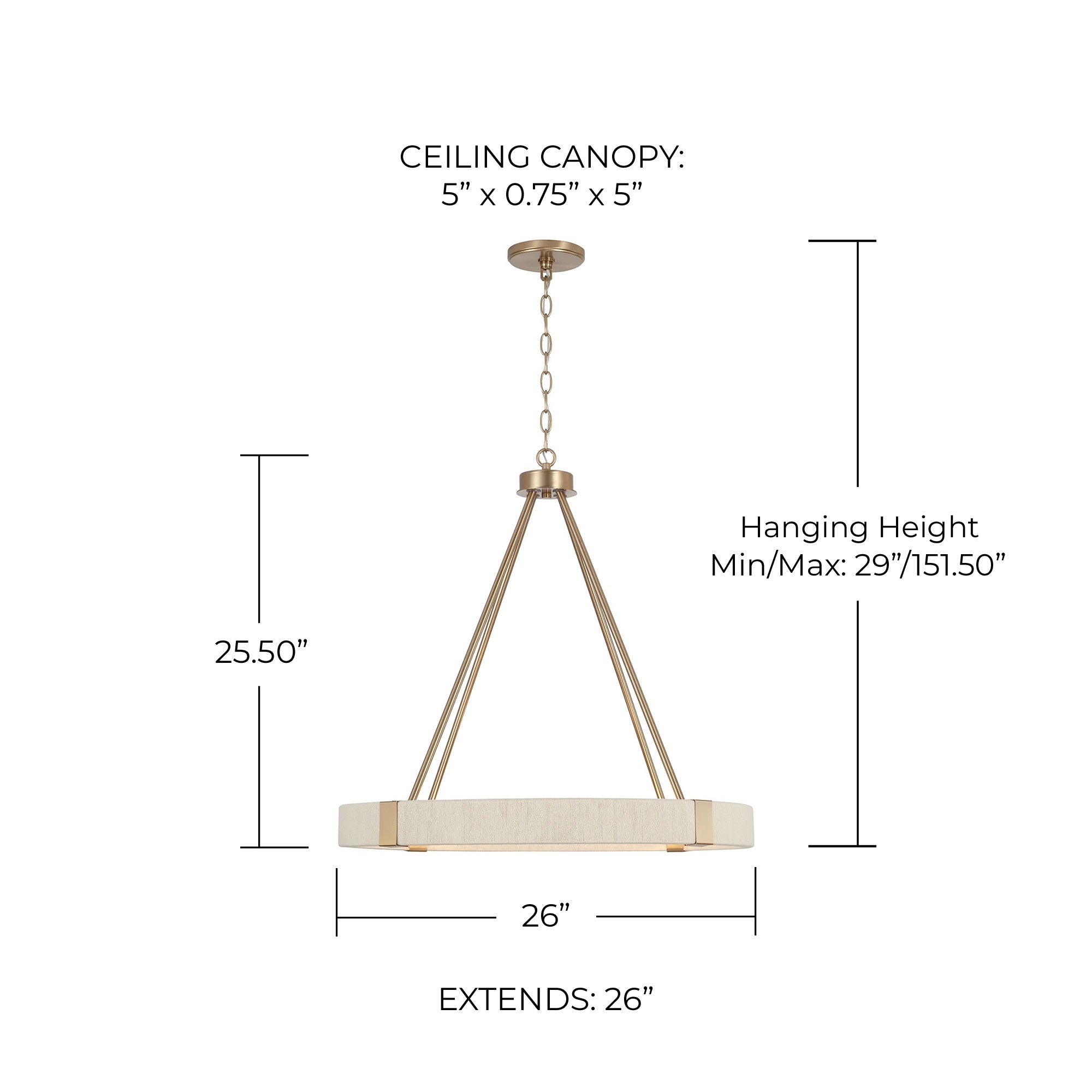 Casual chic meets all-around luxury with the Bryn Small Chandelier. The warm Matte Brass complements the Bleached Natural Rope to bring elevated designer style to any space.