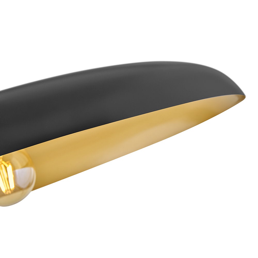 - Two-tone design features a brass finish suspension and shade interior, with a complementary exterior shade finish for depth
