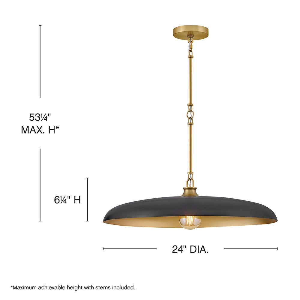 Hush 24" One Light Medium Dome Chandelier, Lacquered Brass / Black Accents