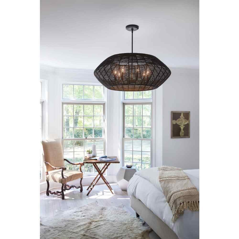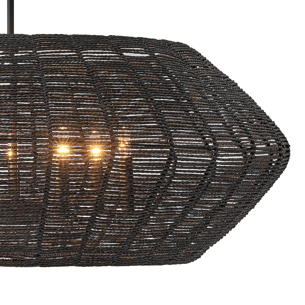 Luca's coastal vibe is permeated with a slightly exotic edge. The bold pendant showcases a robust, woven drum shade, and a full finished cluster for plenty of functional light offered in a variety of finish options. Luca is part of the Lisa McDennon Collection.