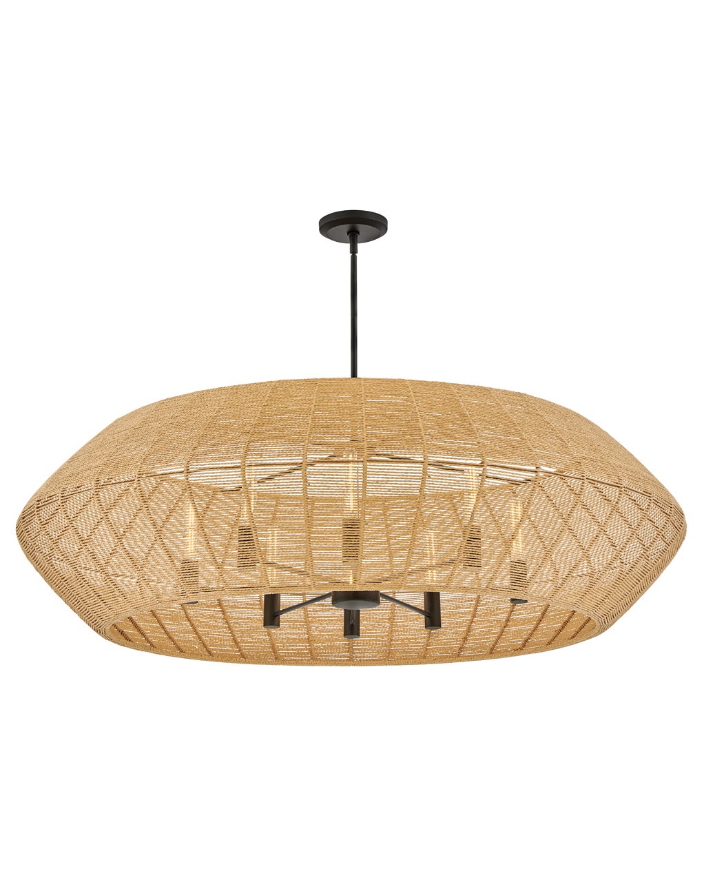 Luca's coastal vibe is permeated with a slightly exotic edge. The bold pendant showcases a robust, woven drum shade, and a full finished cluster for plenty of functional light offered in a variety of finish options.