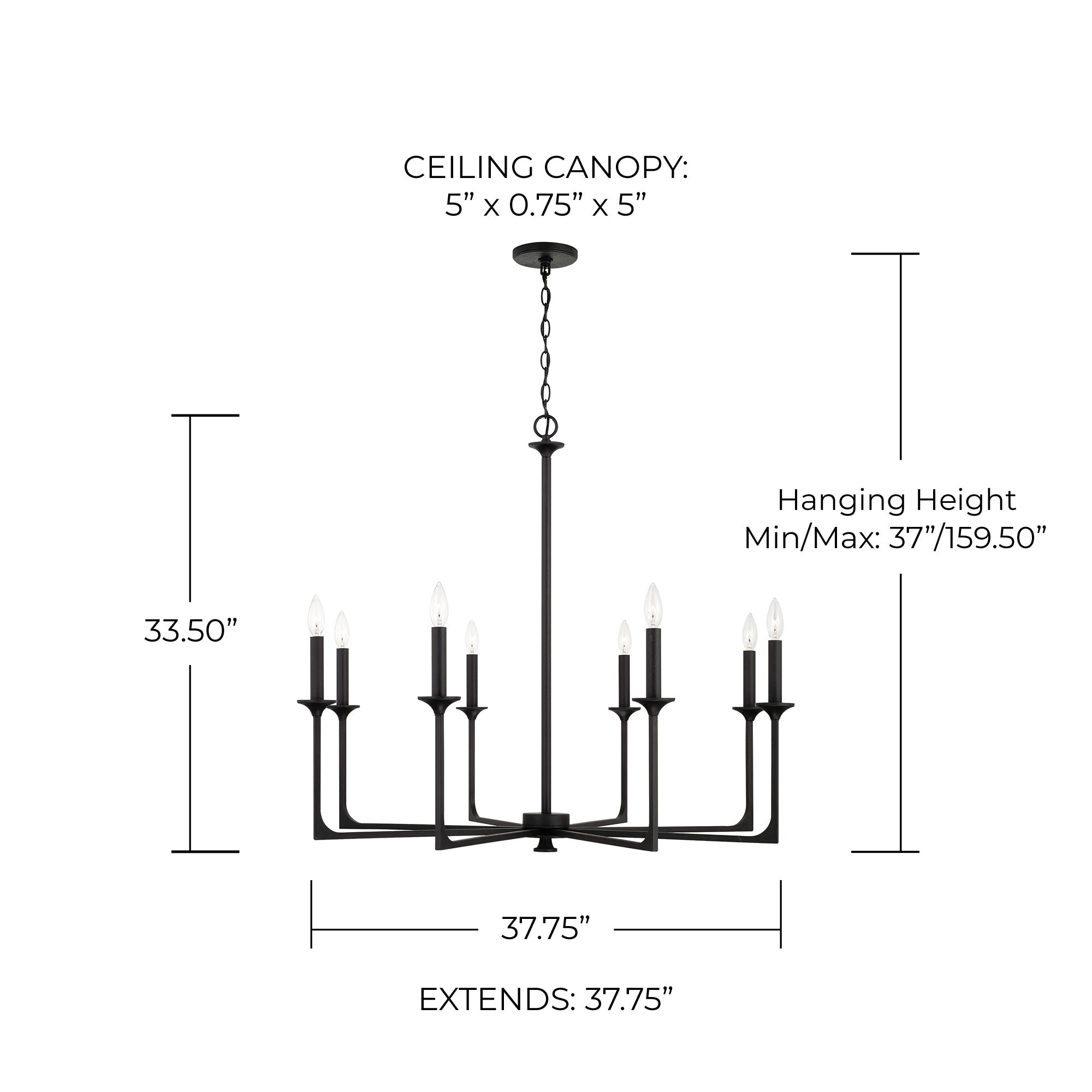 Odell 37.75" Eight Light Chandelier, Black Iron