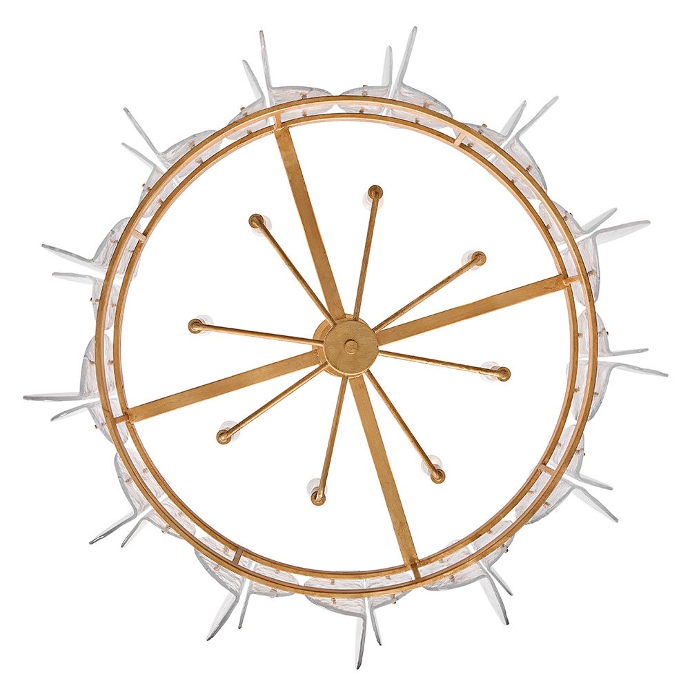 Opulent folded panes of textural water glass surround Seraphina’s glamorous, Distressed Brass frame, creating varied refractions and softly diffusing warm illumination throughout your space. A versatile yet stately silhouette makes a chic transitional statement in both modern and traditional settings.
