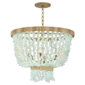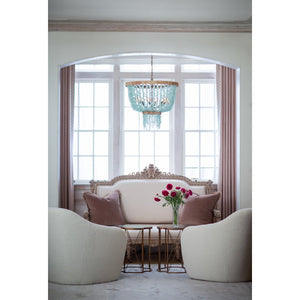 Dune 25" Six Lights Medium Single Tier Chandelier, Burnished Gold / Gold Blue Sea Glass