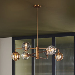 Oberon 36" Six Lights Large Adjustable Single Tier Chandelier, Heritage Brass