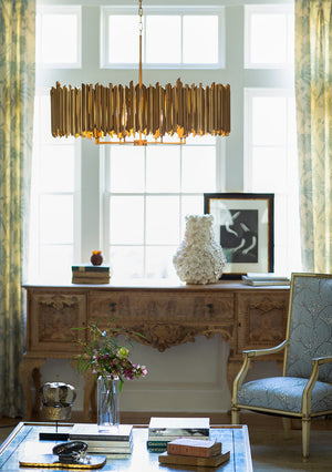 Roca 40" Eight Lights Large Drum Chandelier, Burnished Gold