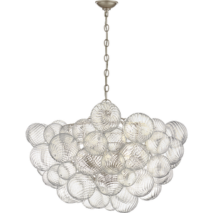Talia 33" Eight Lights Large Chandelier, Burnished Silver Leaf / Clear Swirled Glass