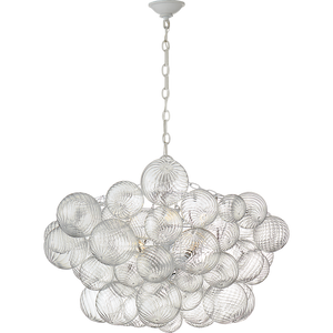 Talia 33" Eight Lights Large Chandelier, Plaster White / Clear Swirled Glass
