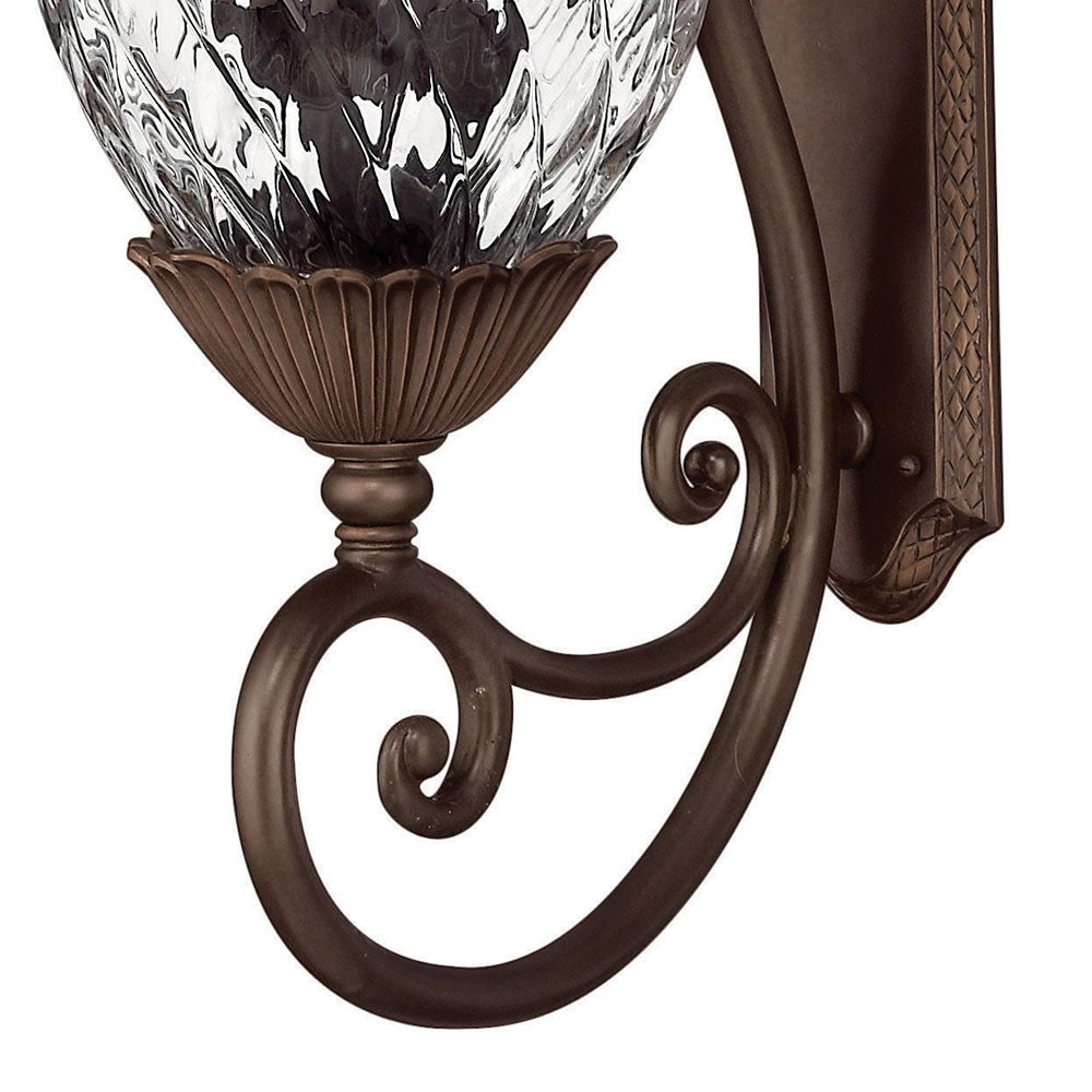 Infuse your home's exterior with the classic tropical plantation energy of this traditional outdoor wall lantern with an iconic pineapple silhouette. Evoking the islands and a bygone way of life, it enchants with clear optic glass and cast fronds and scroll details, all in a bronze finish that adds wonderful warmth. This charming fixture captures a spirit of whimsy and creates inviting curb appeal as it delivers safety and visibility with bright illumination to welcome friends and family to your home.