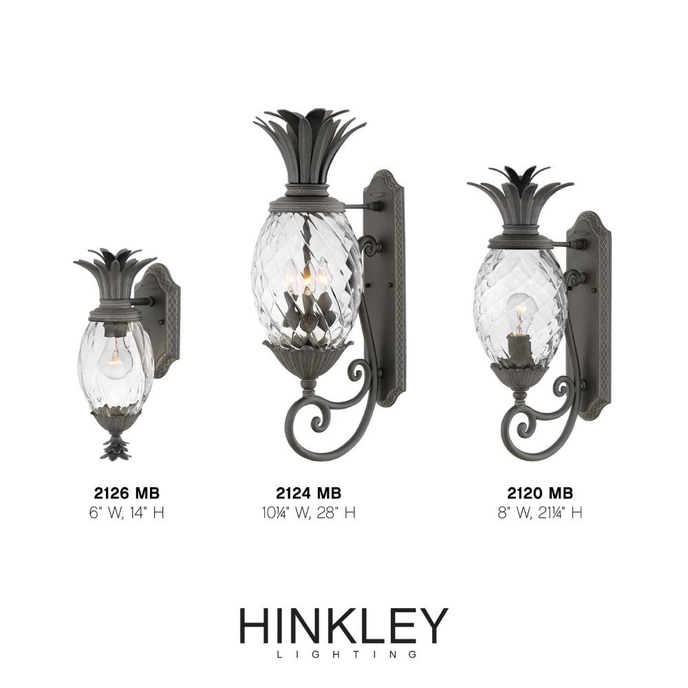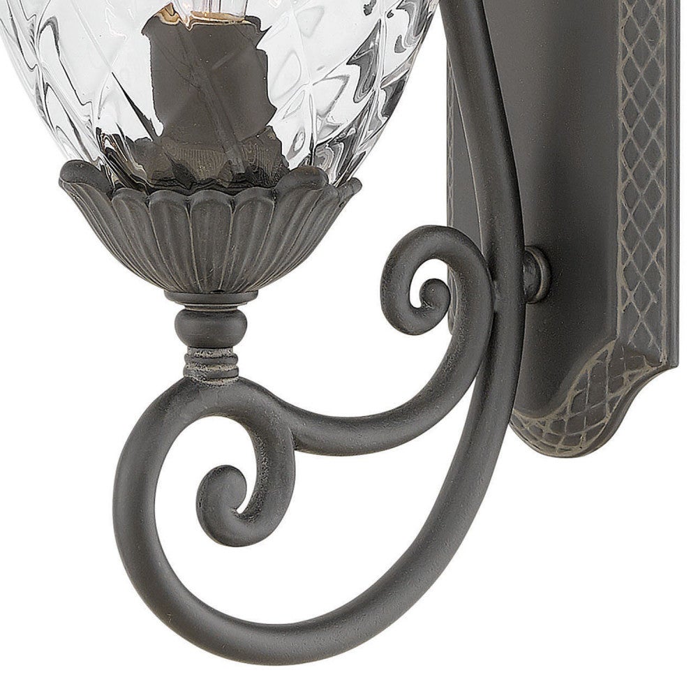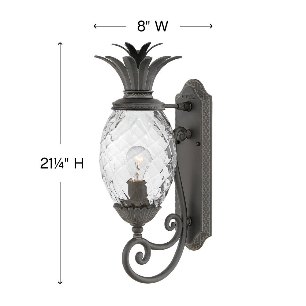 Heritage quality and details evoke old world character on this traditional outdoor wall lantern. Its pineapple silhouette is complete with cast frond details on top and optic glass that defines the iconic silhouette. Designed for durability, this fixture features aluminum construction with an outdoor finish that adds contrast and depth against exterior walls. Add this fixture beside a front door or flanking a garage to bring both charming curb appeal and added visibility and safety.