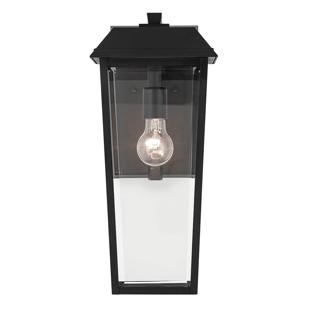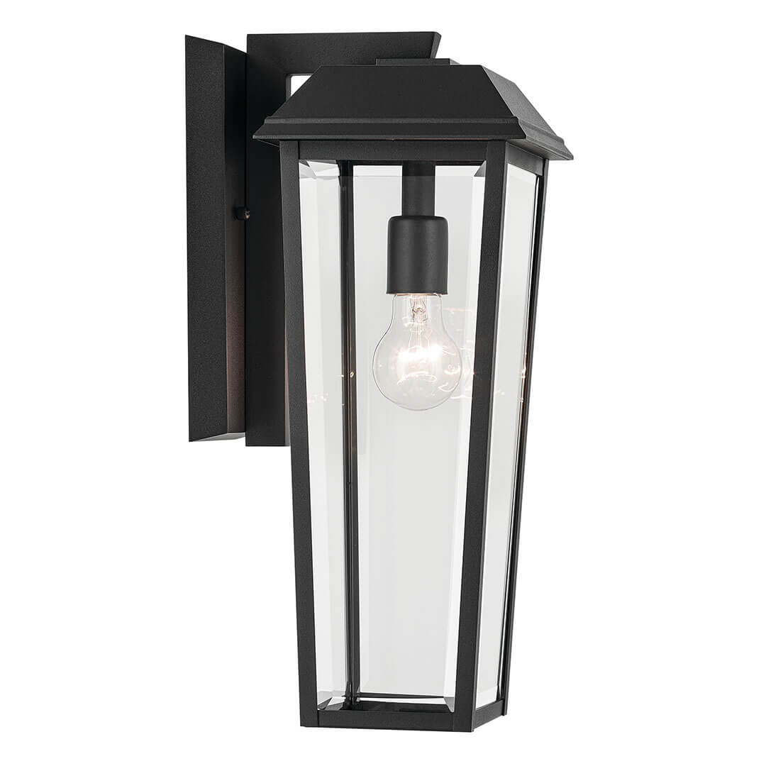 - An outdoor wall light with beveled clear glass enriches exterior walls with refined style
