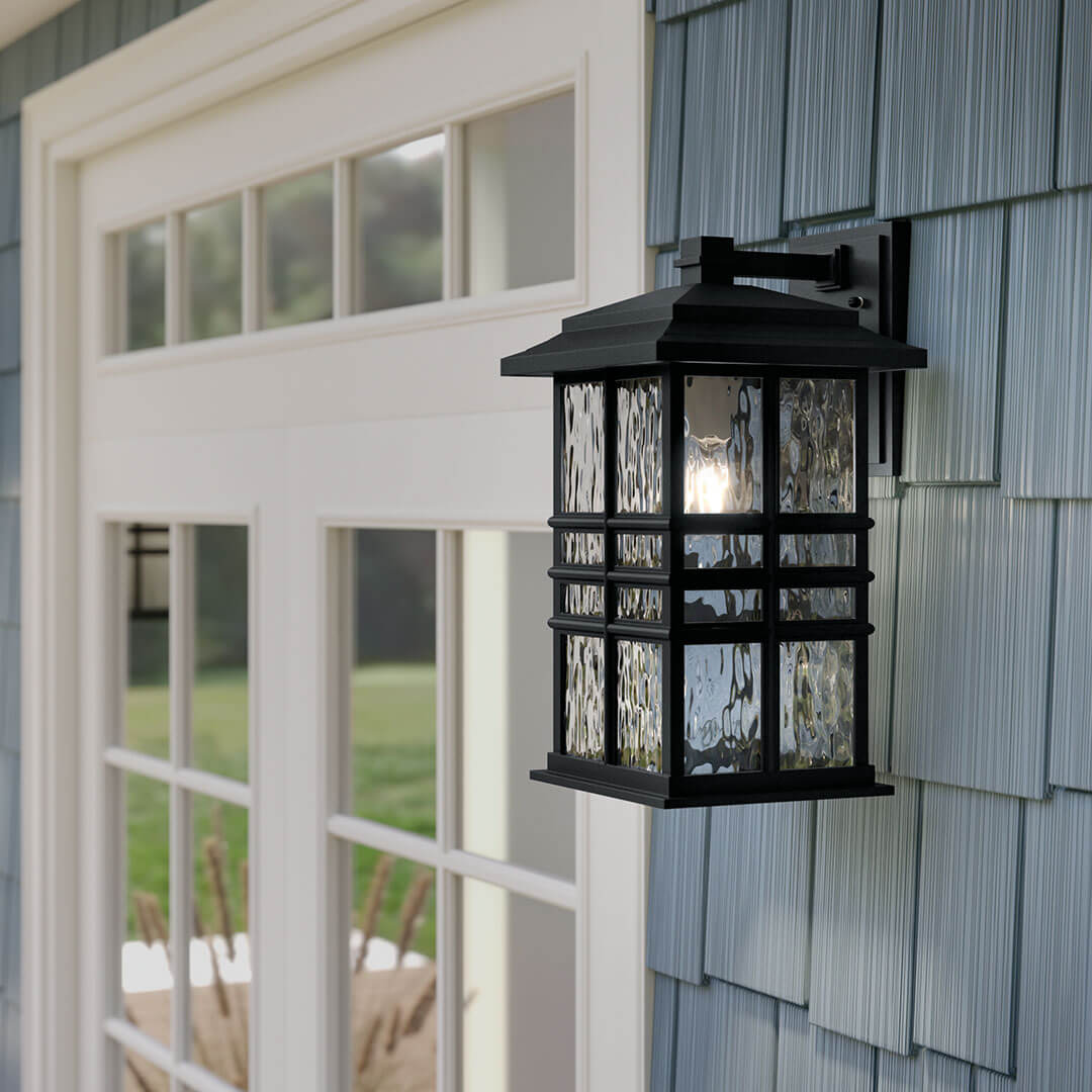 Clean lines and textured glass define a wall fixture that nods to traditional lantern design while holding its place firmly in the present. The hammered glass diffuses light into shimmering surfaces, casting shadows that shift as the day changes. Its durable construction stands up to wind, moisture, and sun, maintaining both form and finish through years of exposure. With restrained detail and a focus on proportion, it rewards close attention without asking for it. Whether installed at a garden path or beside a doorway, it introduces structure with calm intent.