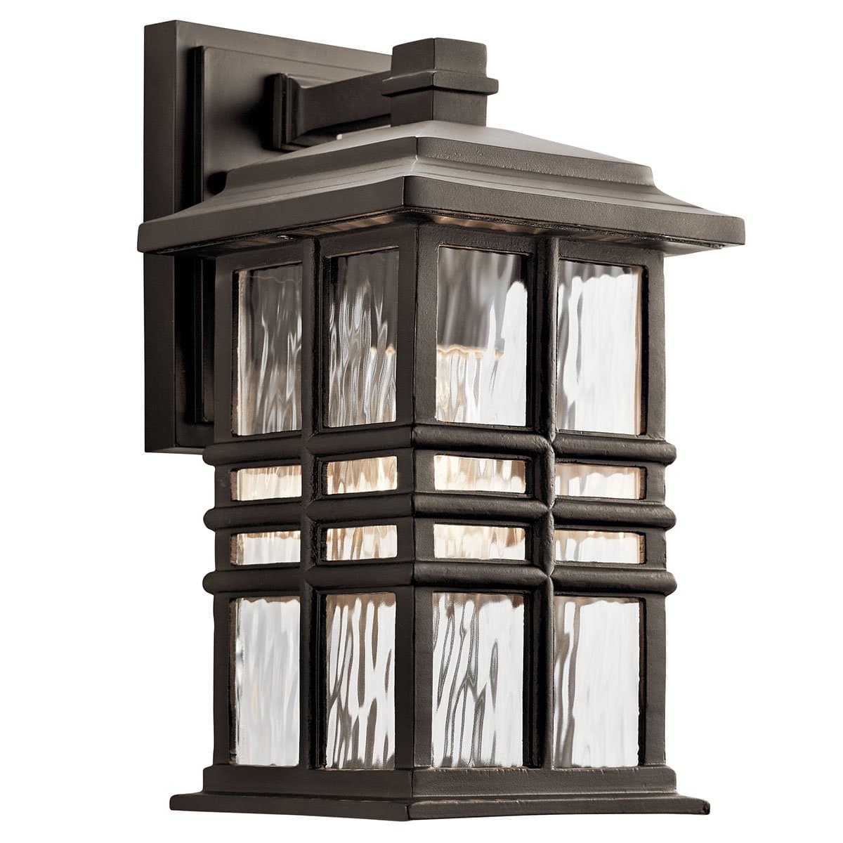 Lake Port Square 6" One Light Outdoor Wall Light, Clear Hammered Glass / Olde Bronze