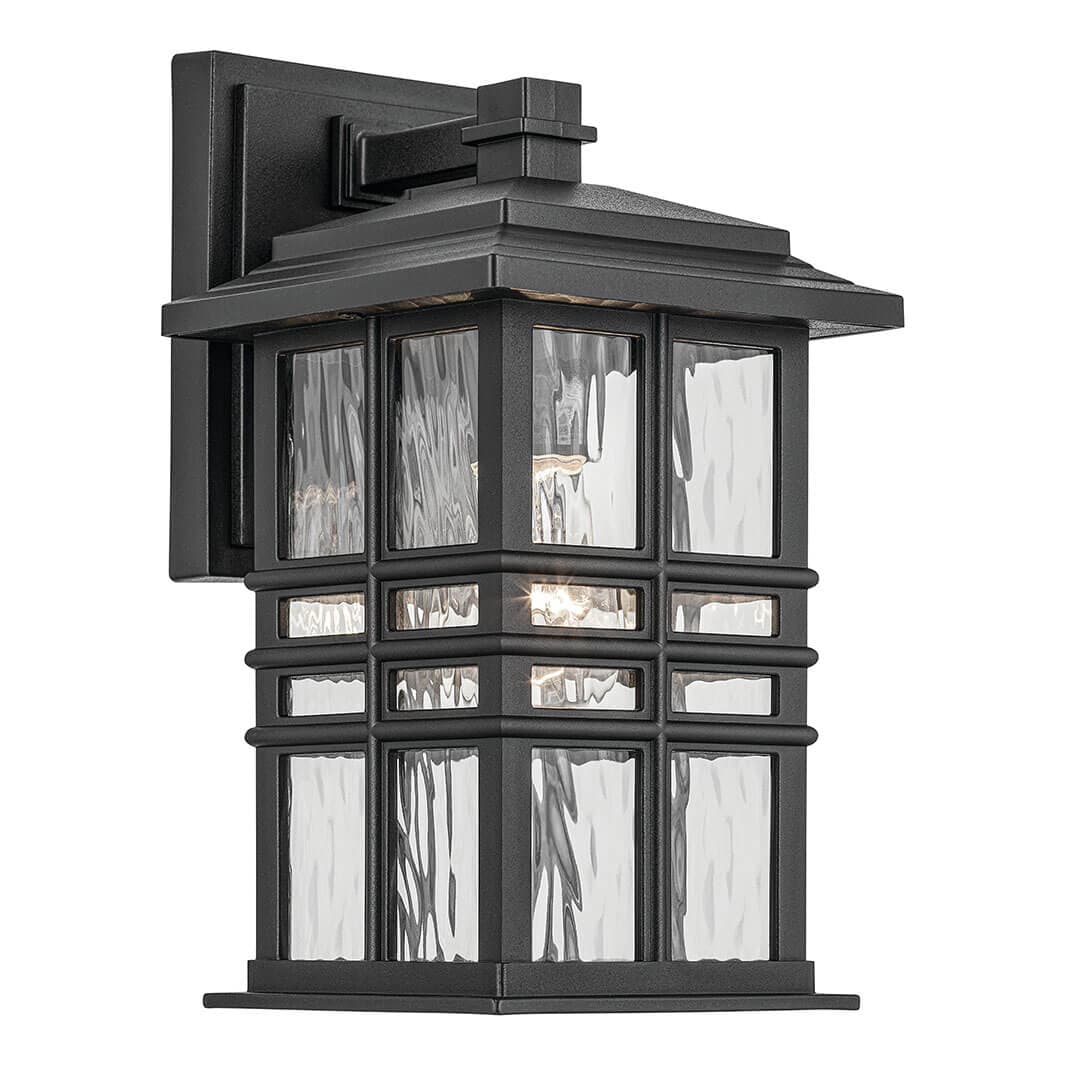 Lake Port Square 6" One Light Outdoor Wall Light, Clear Hammered Glass / Textured Black