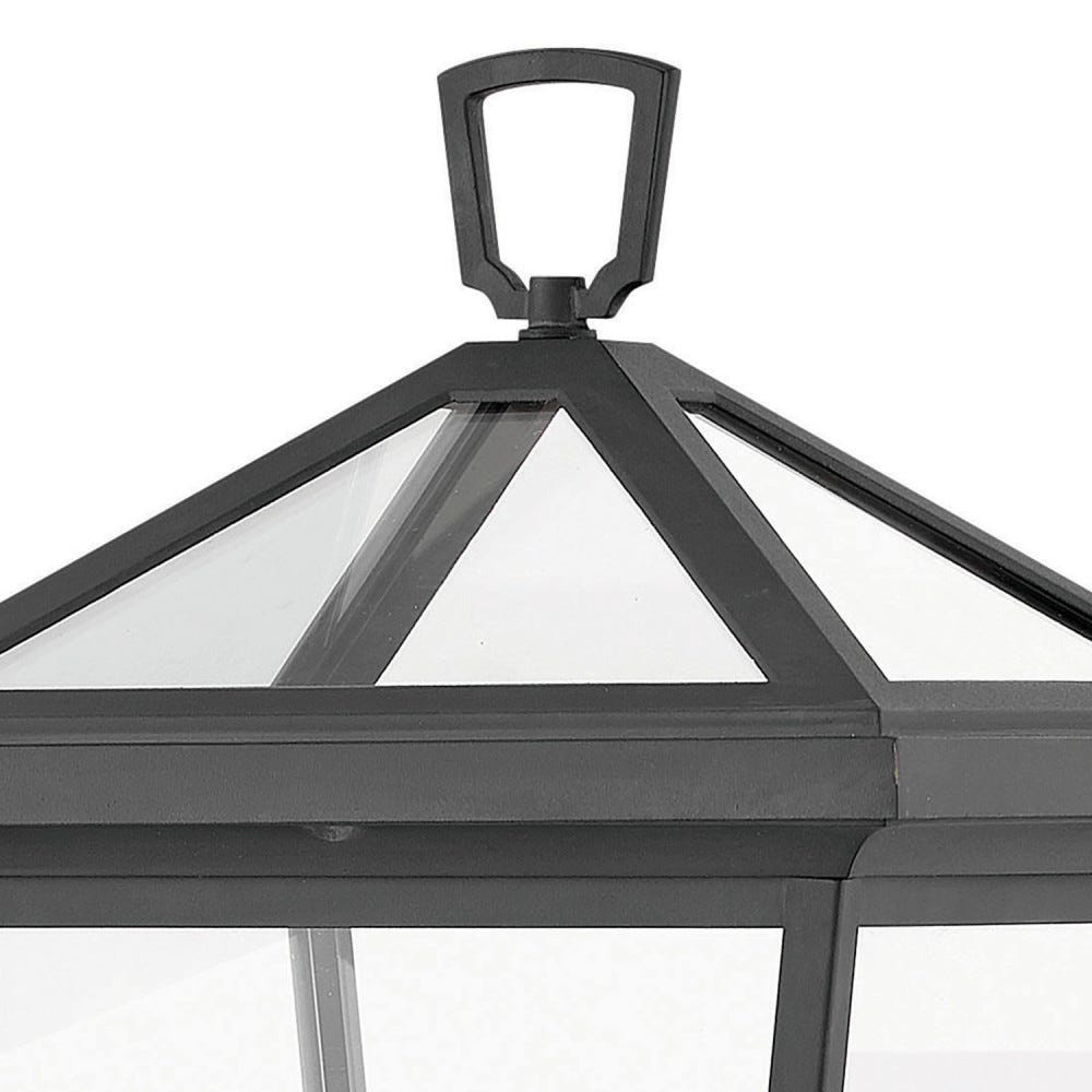 - A top loop detail adds presence to this transitional outdoor post or pier mount lantern