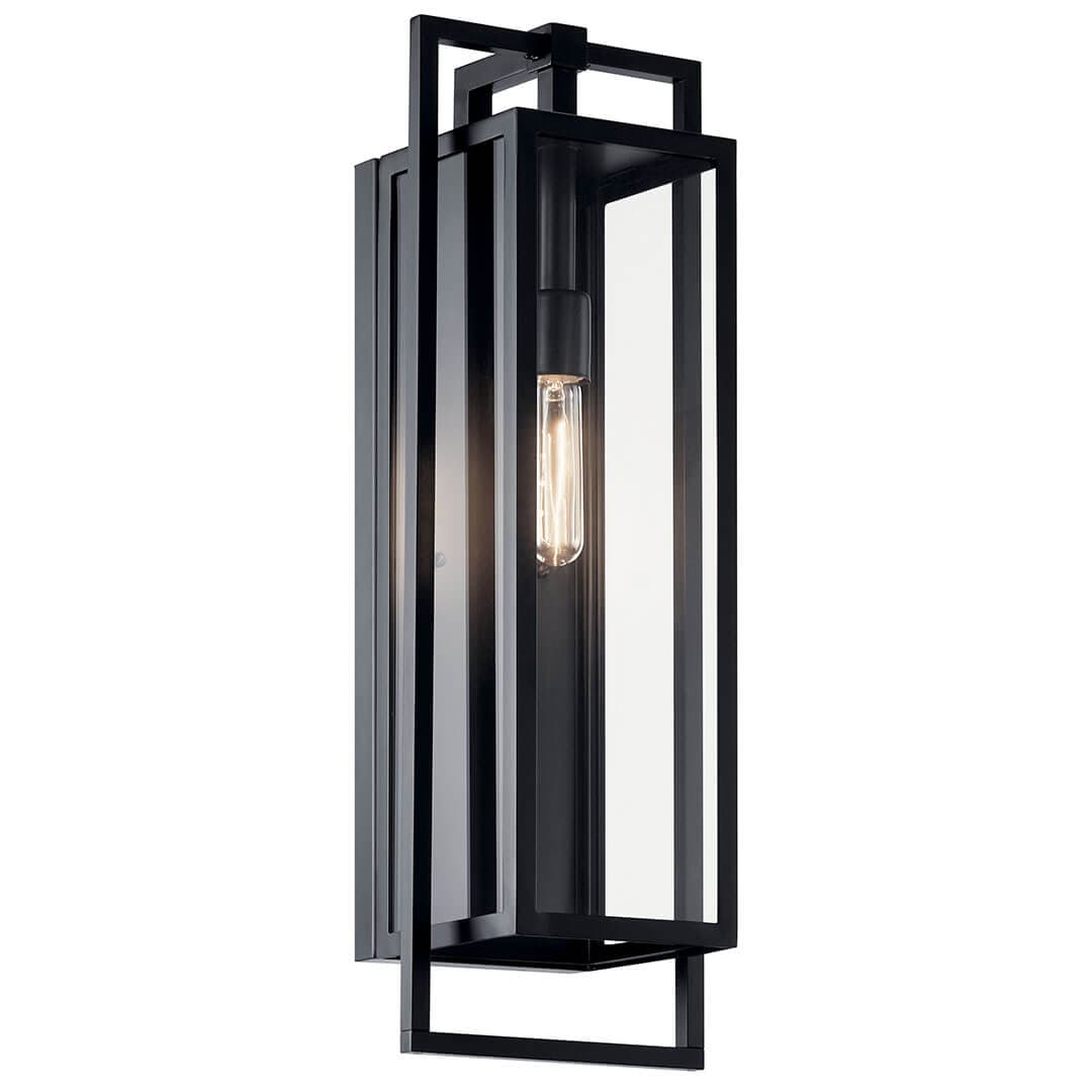 - An outdoor wall light with clear glass brings industrial style to porches and entryways
