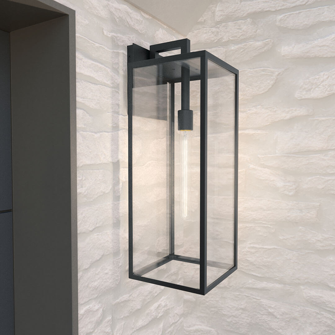 - An outdoor wall light with clear glass brings polished character to patios and porches