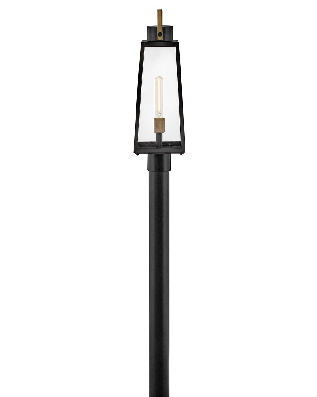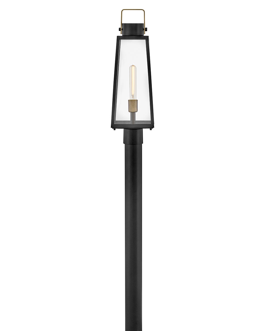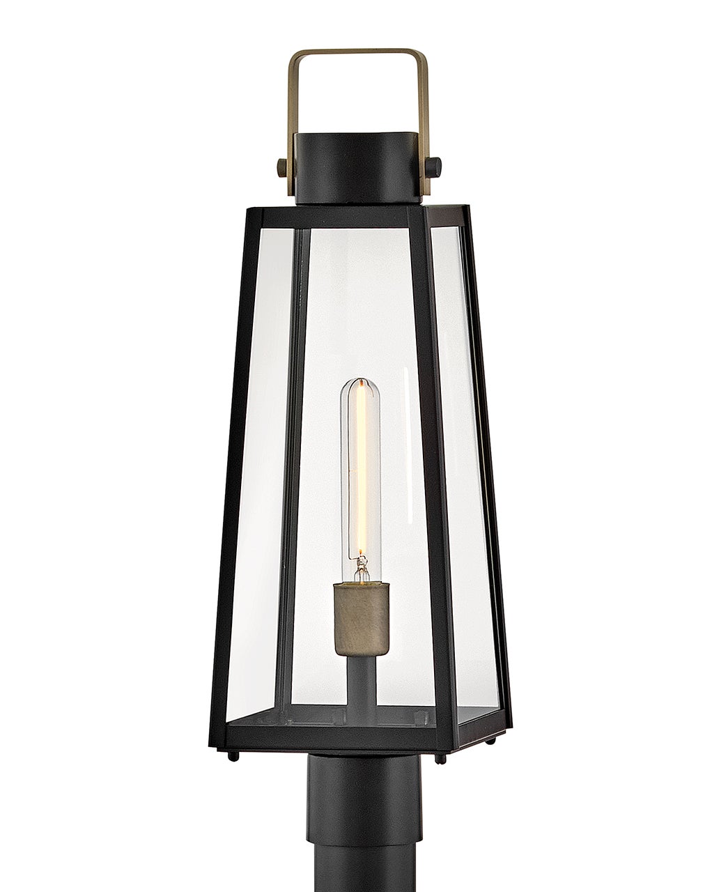 • Modern outdoor post lantern that merges clean geometry with radiant clear glass
