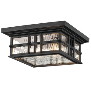 Lake Port Square 12" Two Lights Outdoor Ceiling Light, Clear Hammered Glass / Textured Black