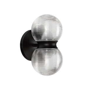 Hollister 9" LED Outdoor Wall Sconce, Black/Clear Ribbed Glass