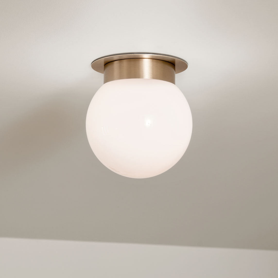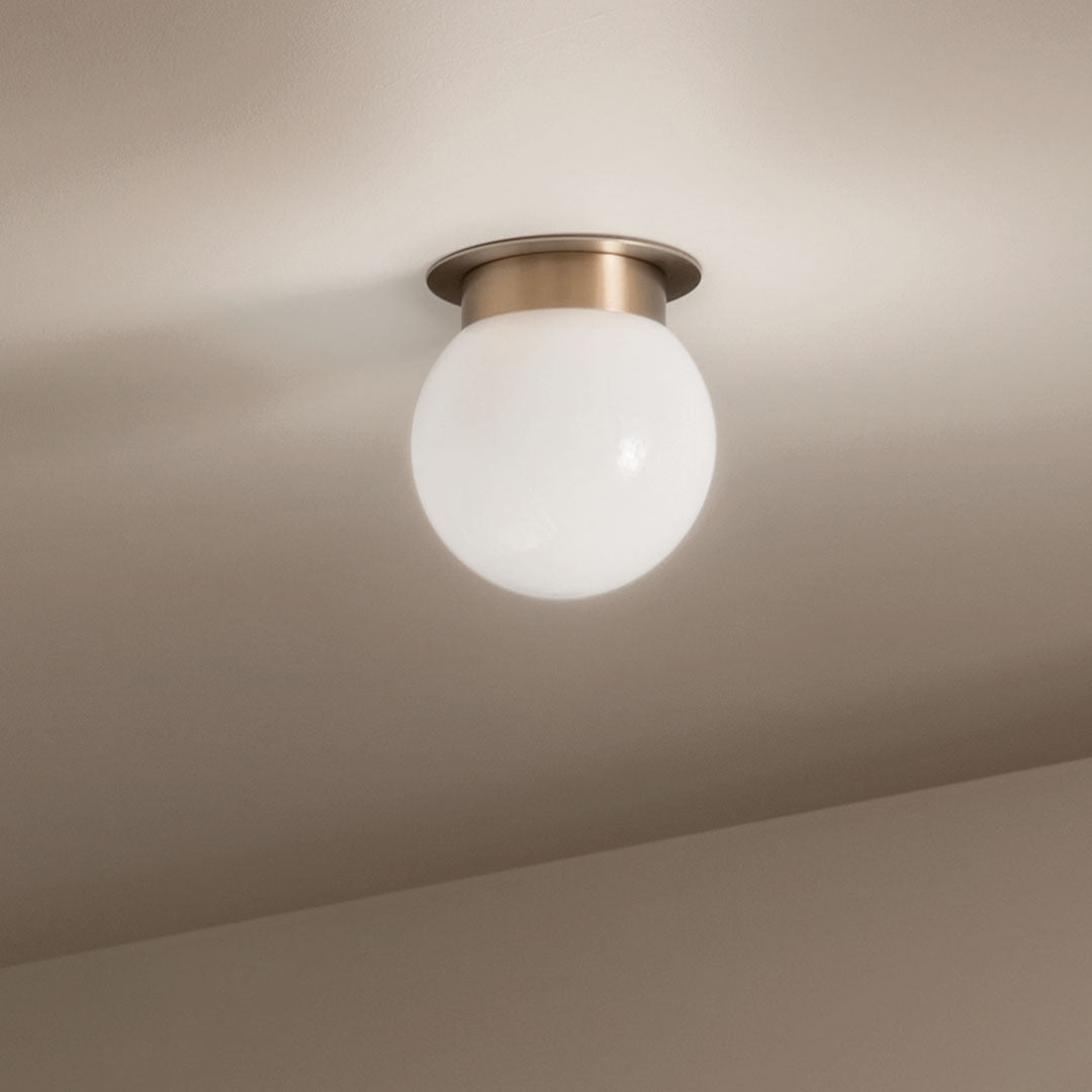 This round opal flush mount resembles a pearl set close to the ceiling. It floats light evenly across the space, making walls and surfaces feel both brighter and softer, exuding clean style without taking over an entryway or hallway. The geometry is simple, allowing surrounding textures and furniture to take the lead. It’s a quiet classic that works in nearly any room.