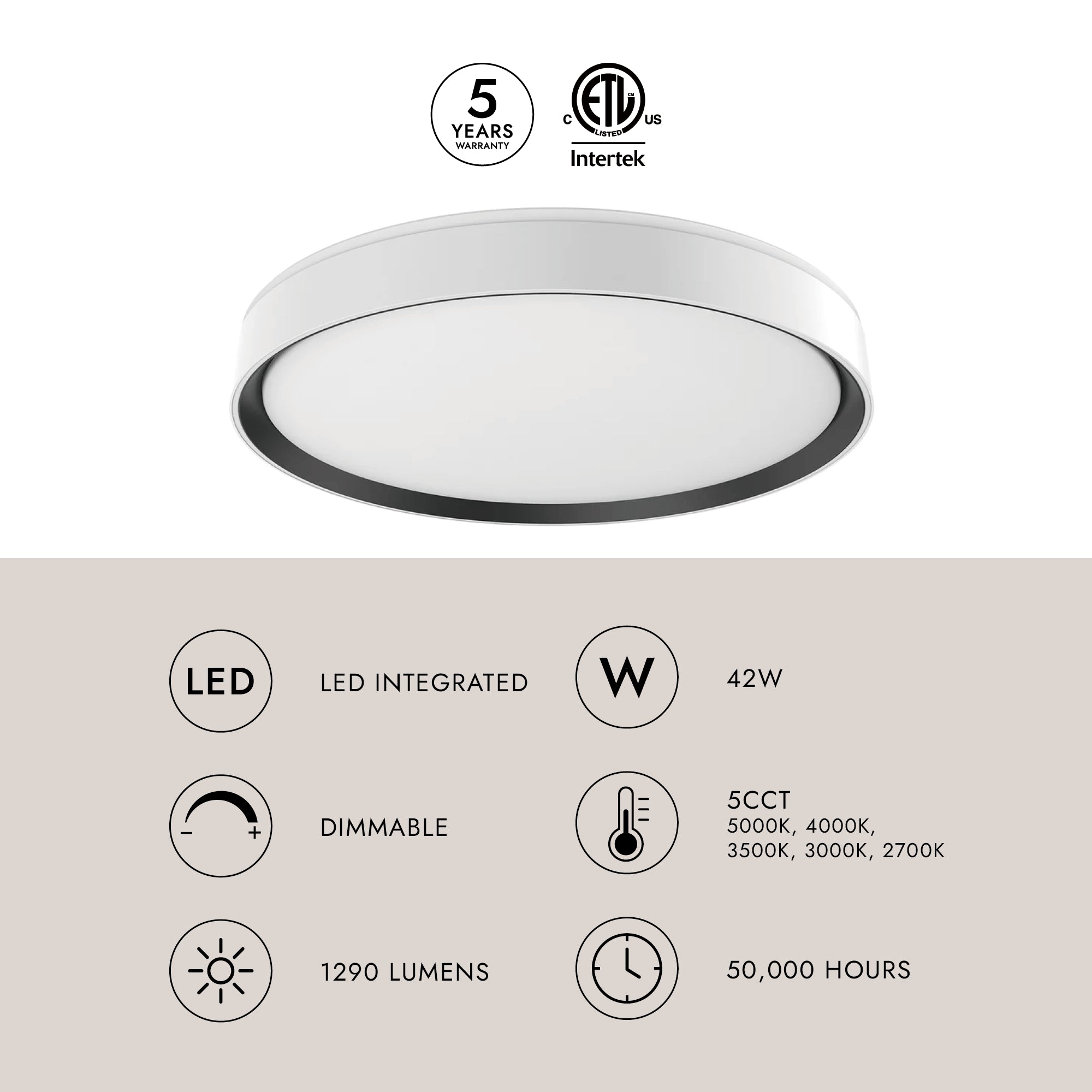 - Dimmable: Yes (100% - 10%, ELV Compatible, Optional, Not Included)