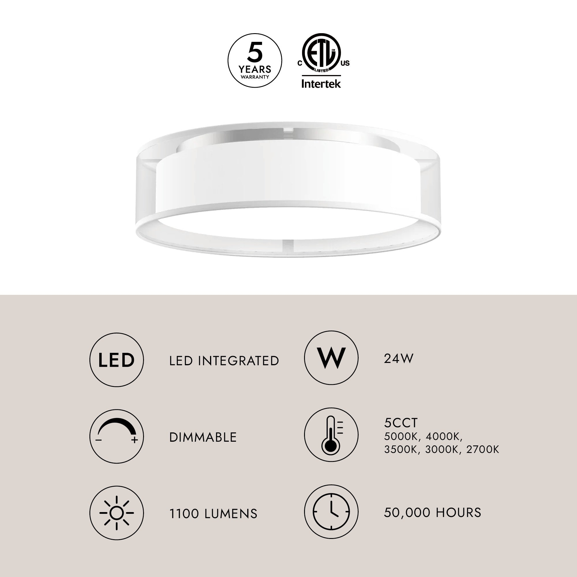 Seraphine 16" LED Flush Mount Ceiling Light, White Organza