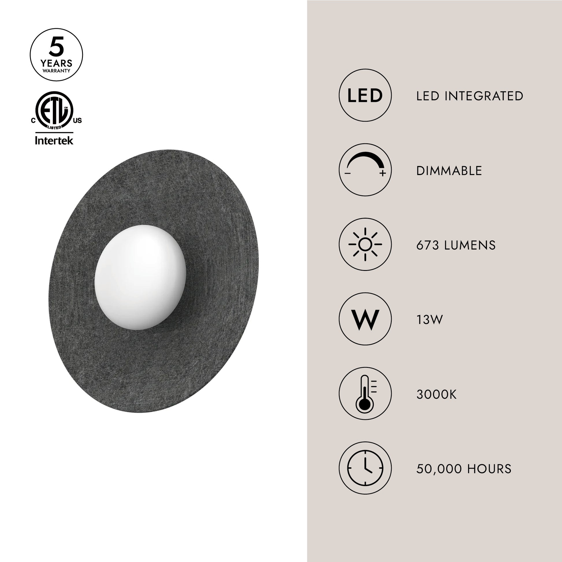 Sunspot 15" LED Flush Mount Ceiling Light, Felt - Gray