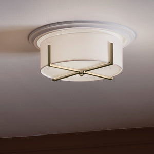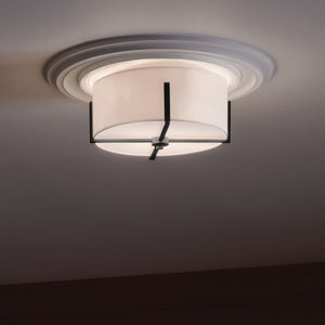 Ryker 16" Two Lights Flush Mount, White Fabric Shade / Black