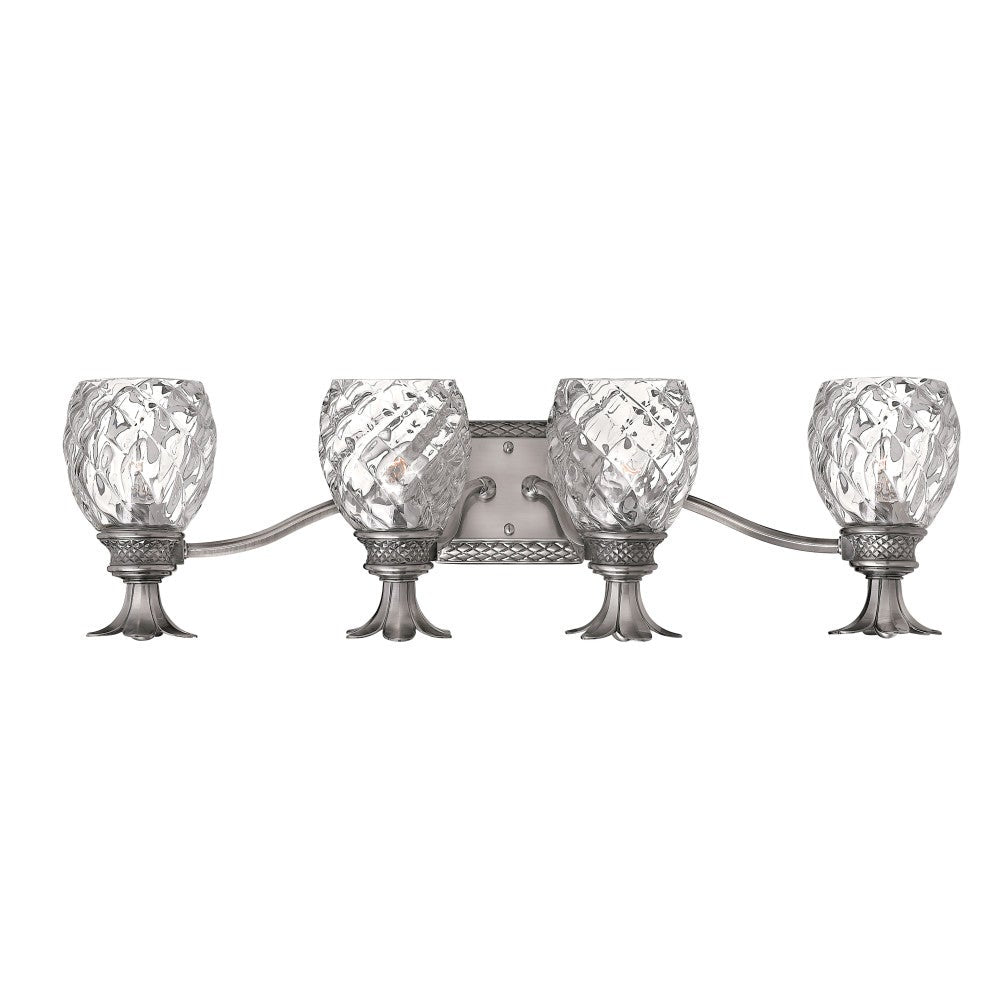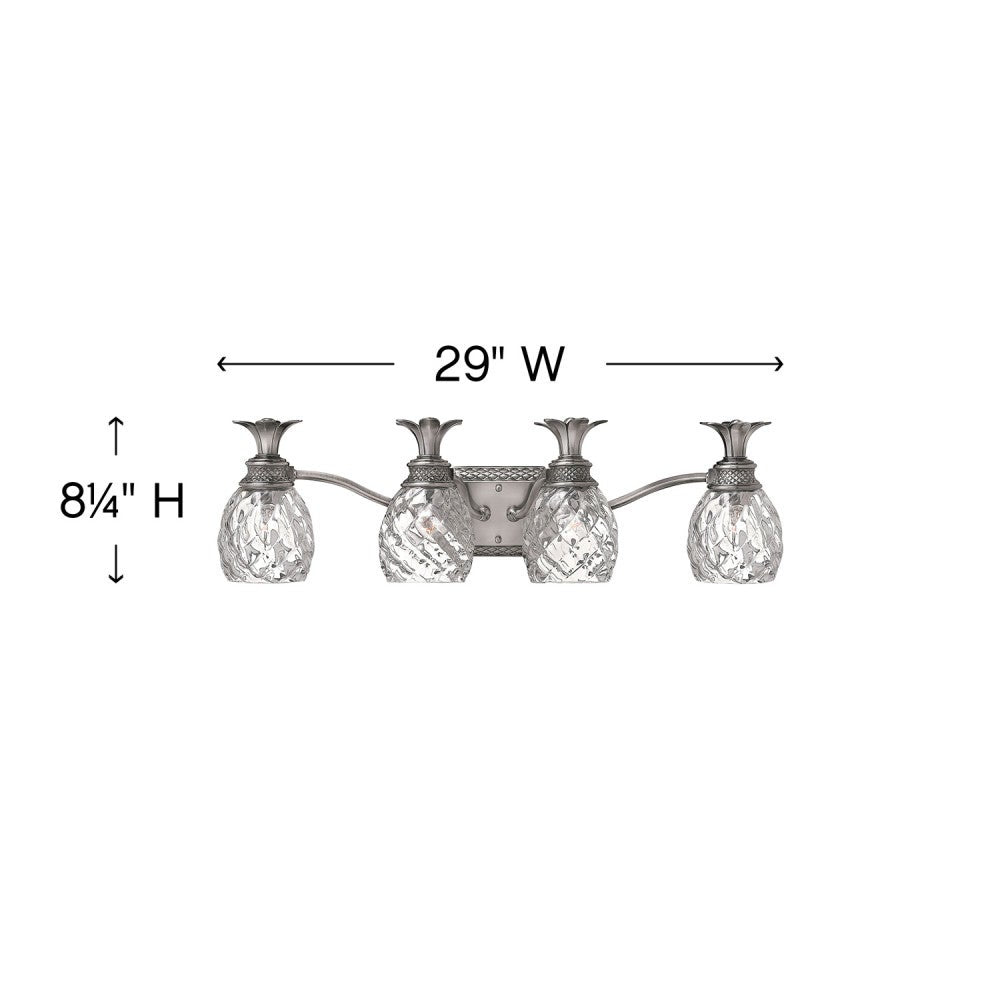 - Four-light configuration ensures generous illumination for wide vanities or shared bathrooms