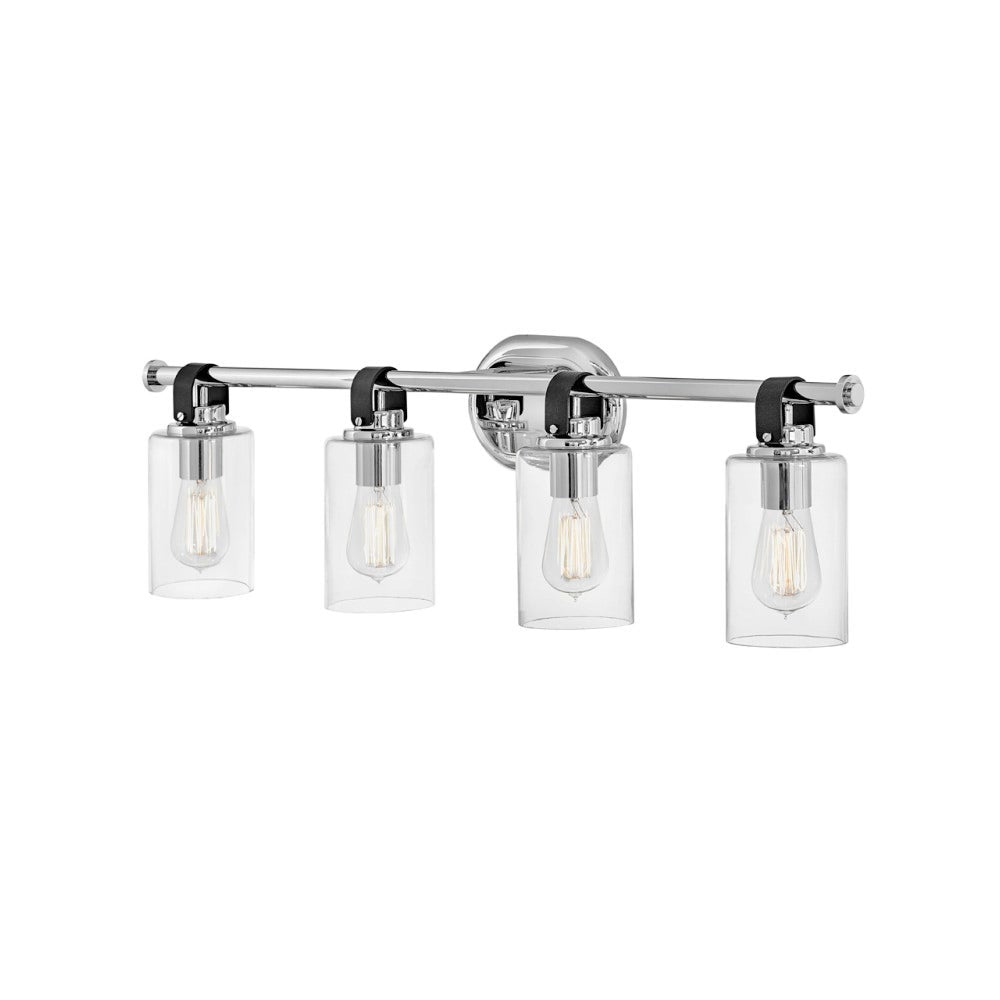 - Four-light layout provides expansive illumination ideal for double vanities or larger bathroom environments